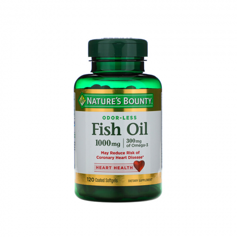 Nature’s Bounty, Odorless Fish Oil, 1,000 mg, 120 Coated Softgels
