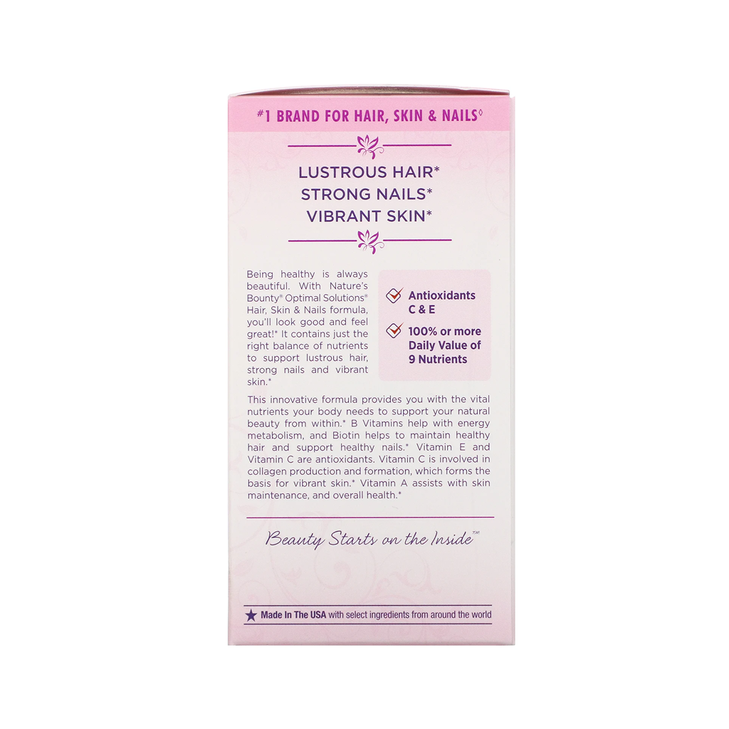 Being healthy is always beautiful. With Nature’s Bounty Optimal Solutions Hair, Skin & Nails formula, you’ll look good and feel great! It contains just the right balance of nutrients to support lustrous hair, strong nails, and vibrant skin.