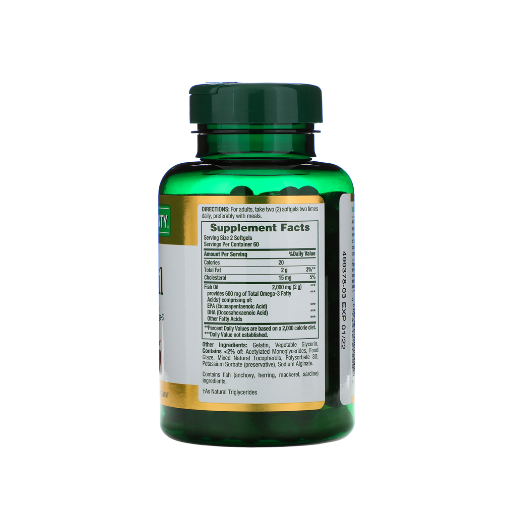 *Supportive but not conclusive research shows that consumption of EPA and DHA Omega-3 fatty acids may reduce the risk of coronary heart disease. One serving of Fish Oil provides 600 mg total of EPA, DHA, and other omega-3 fatty acids.
